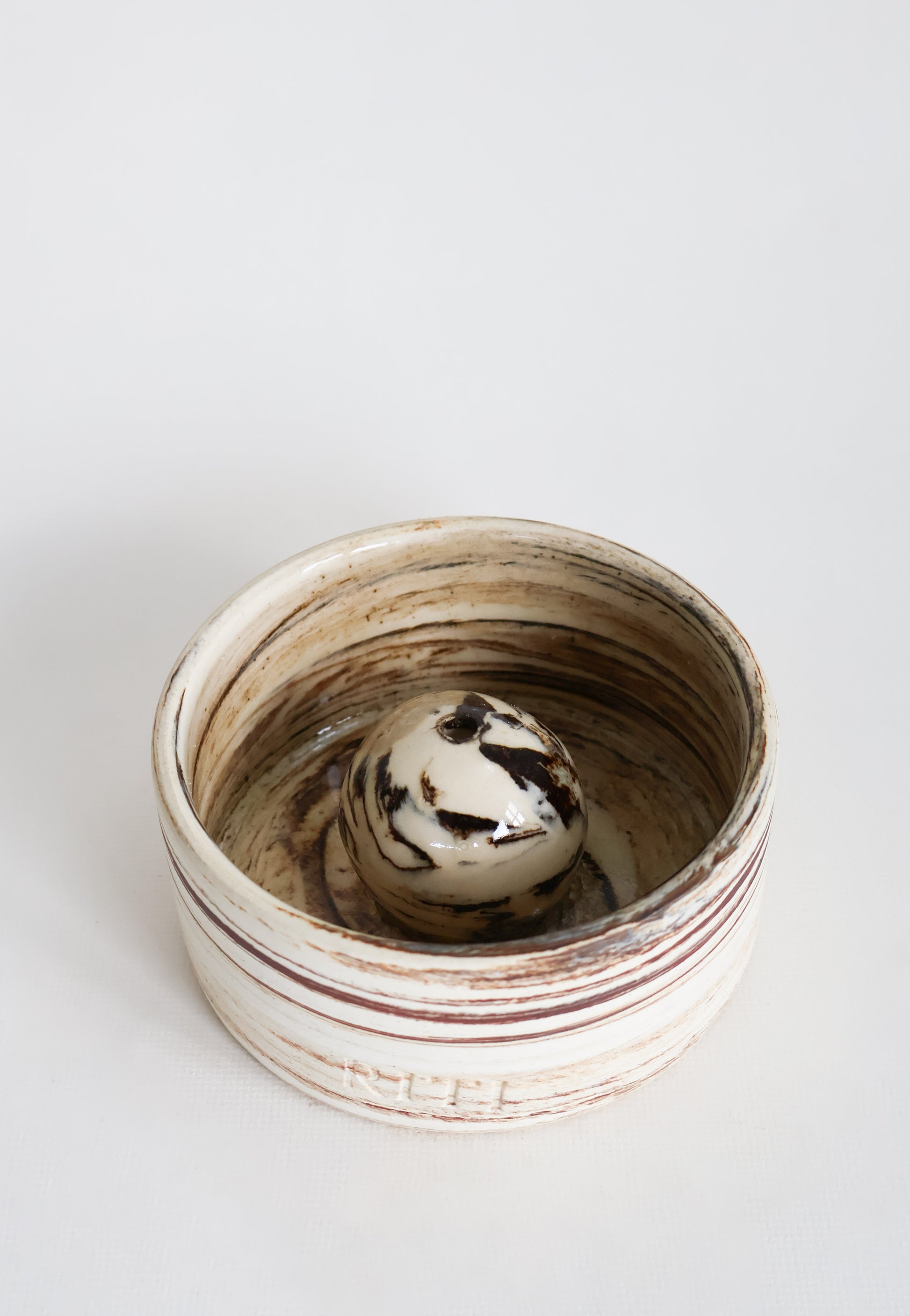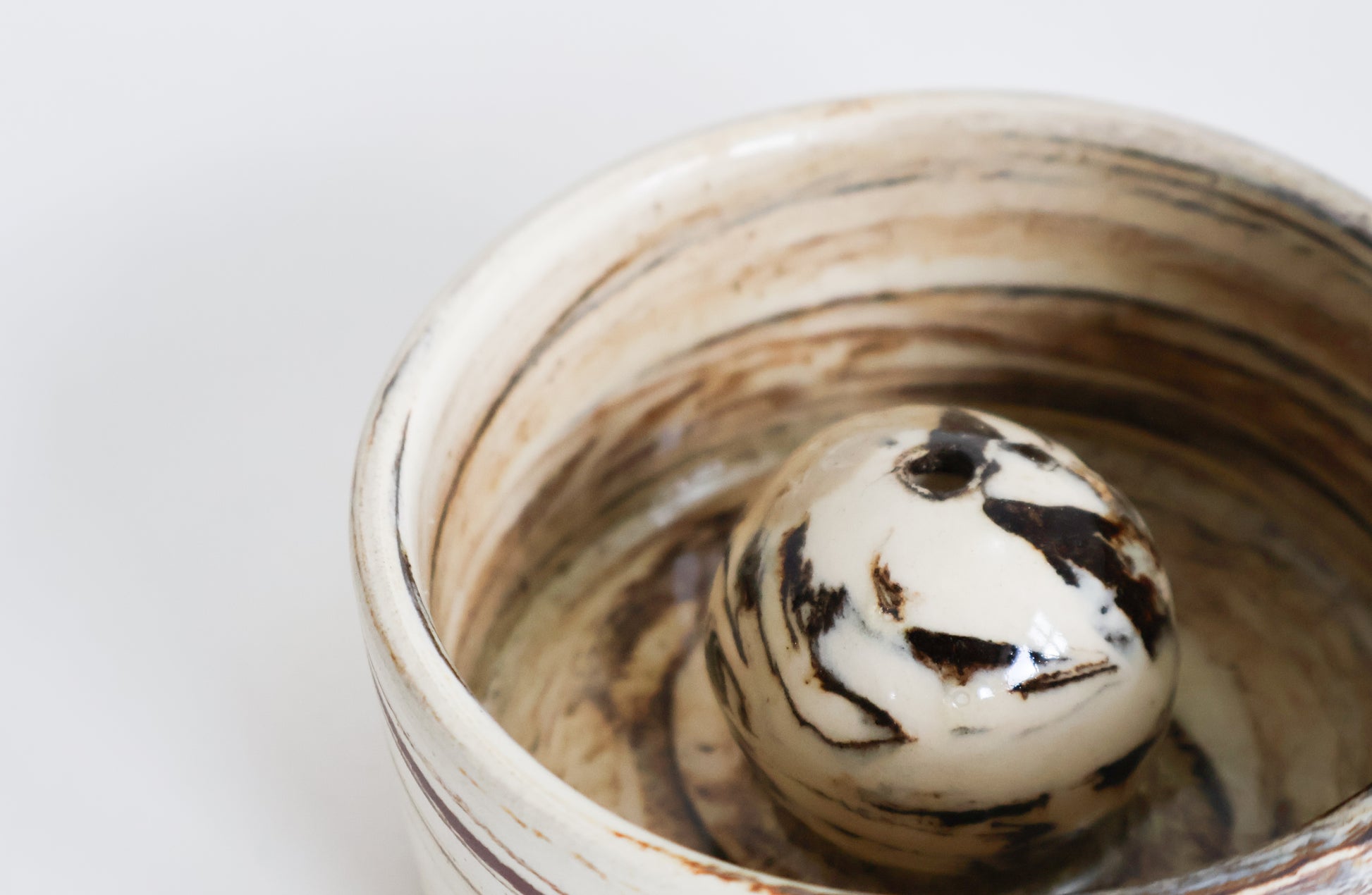 Designed in our studio and hand made by our artisan, our Aura Incense holder is a unique design piece for your home. Made with a ceramic marbling technique, each piece is different and a work of art. Use as a decor piece or use it to burn our Incense sticks.